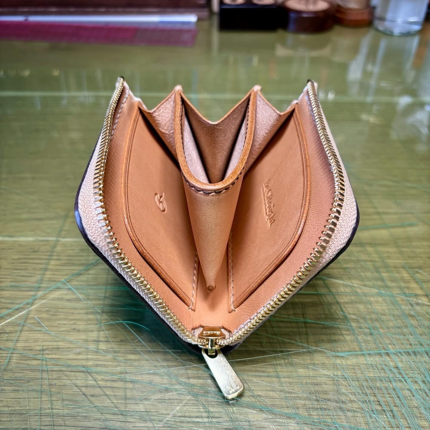 小銭入れをくぐらせる形で紙幣を入れる事ができ、折り目を付けたくない方にもオススメのお財布です。