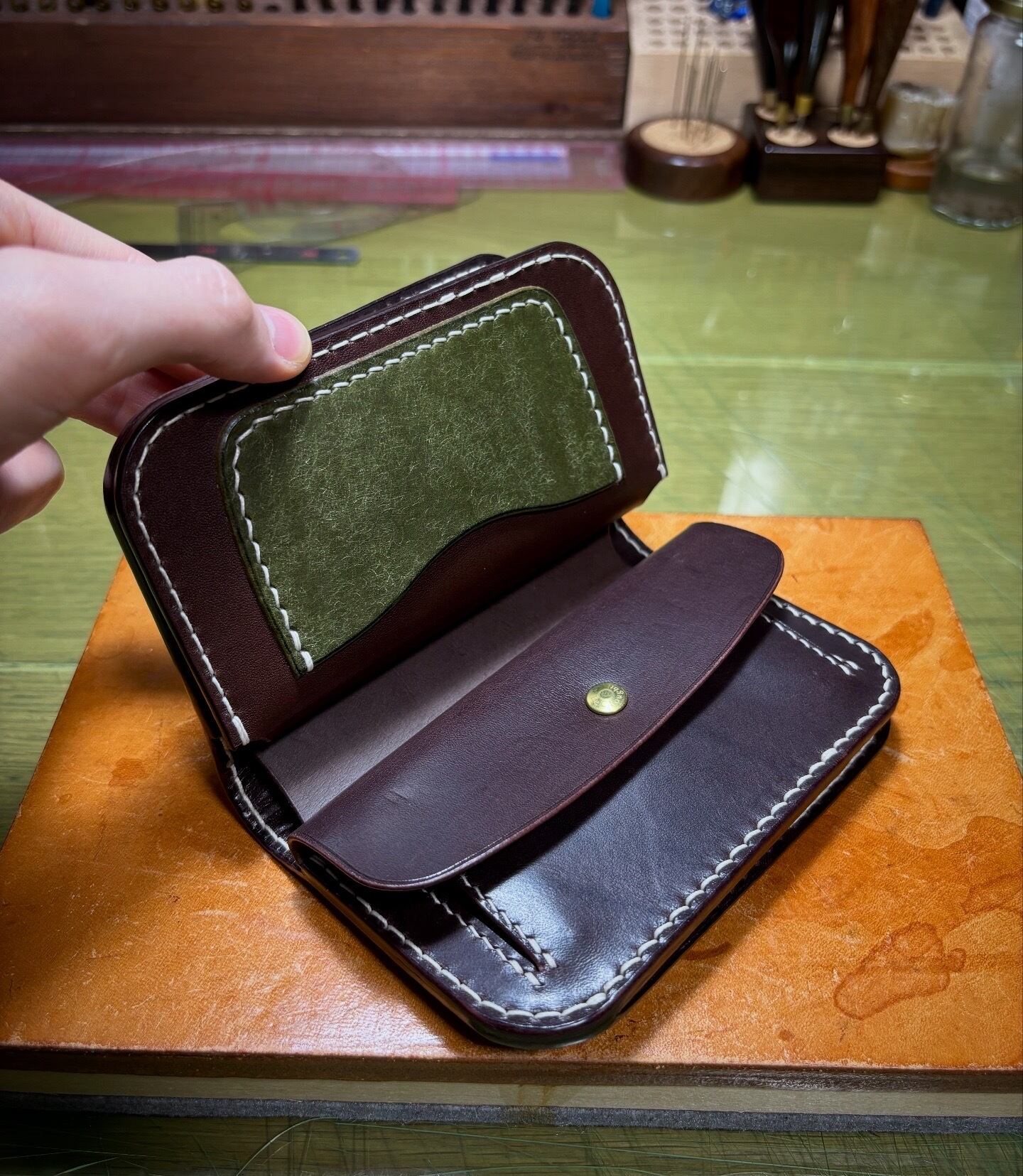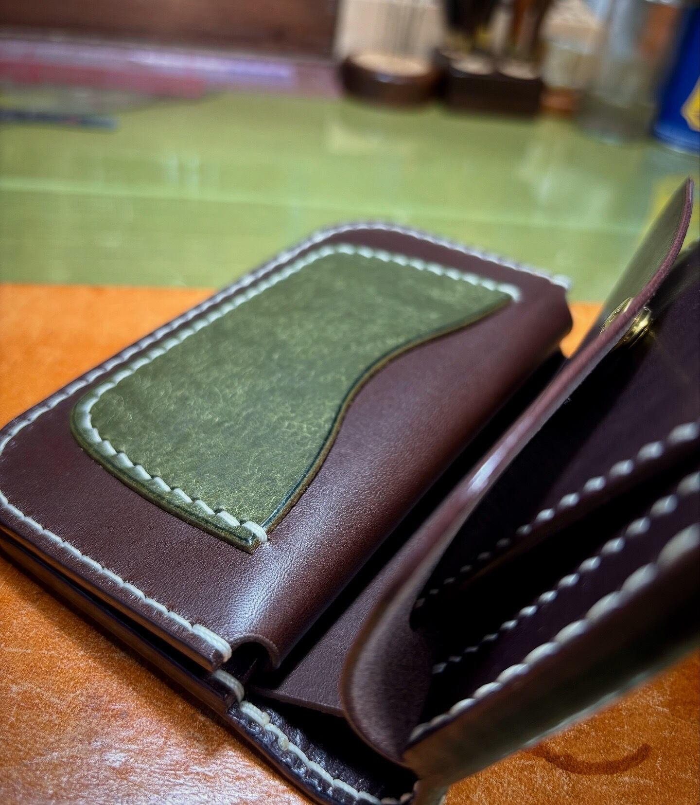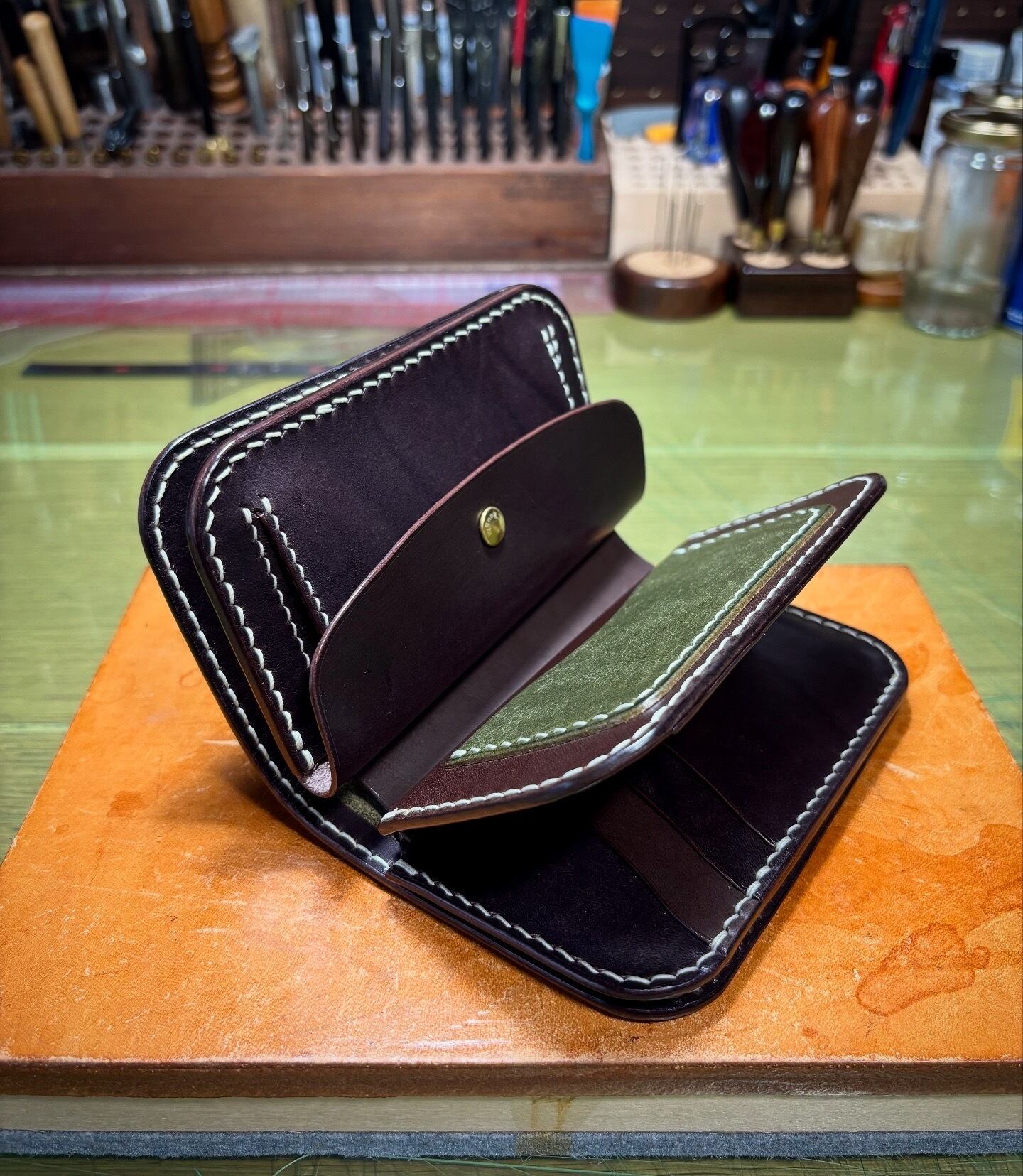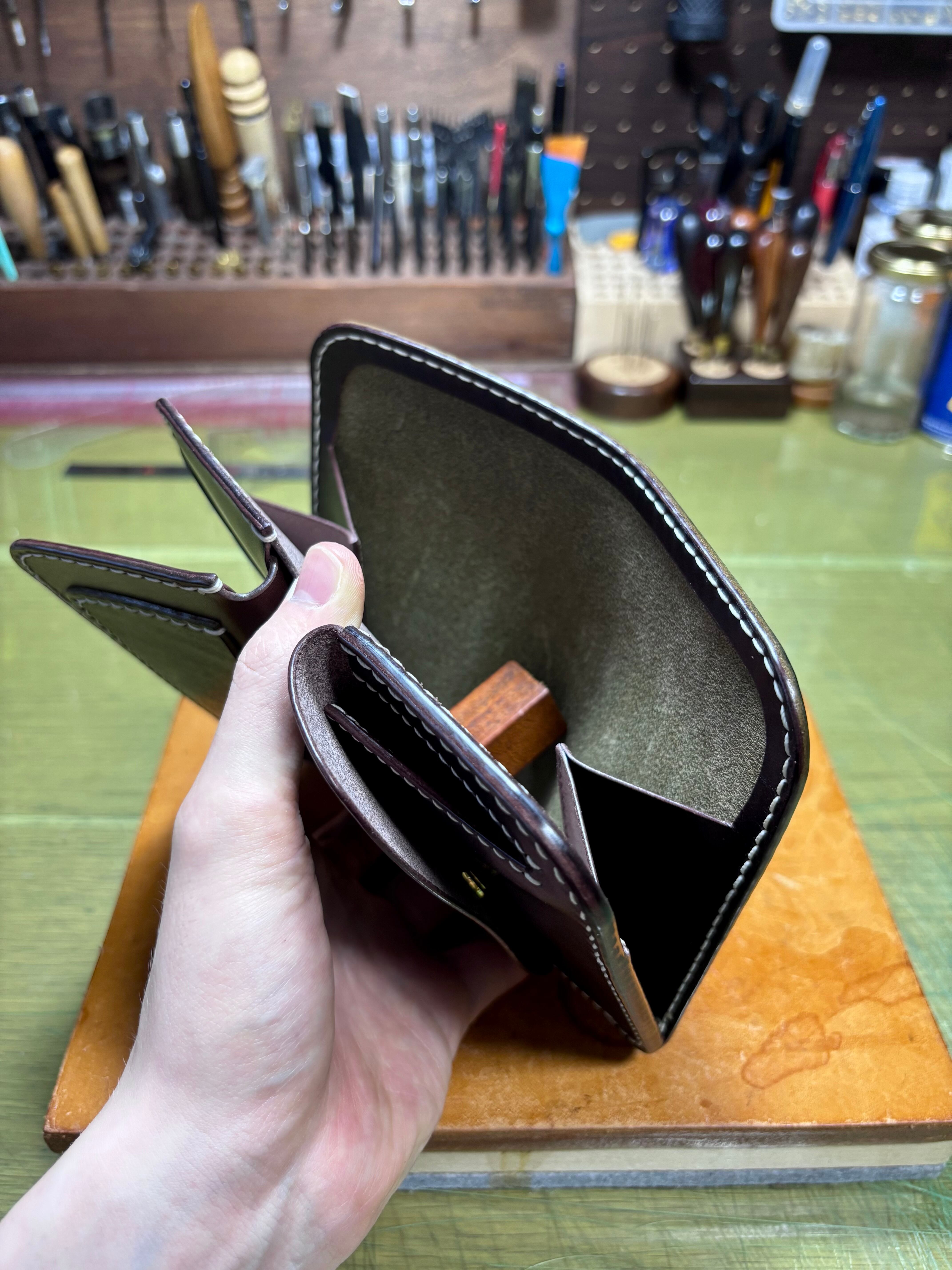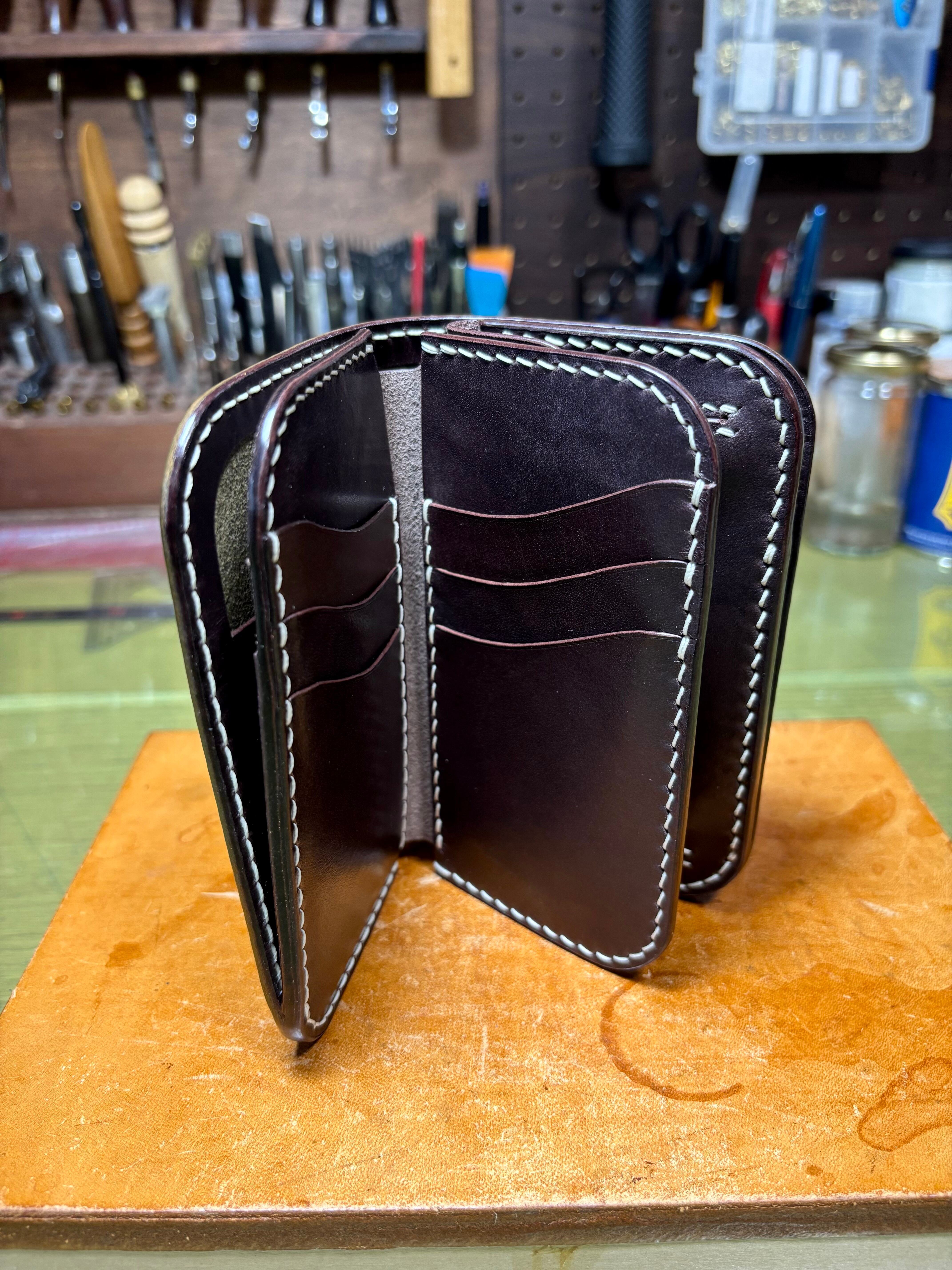 『ミドル』という形の財布は、革財布ならではのアイテムであり、手作りの革小物を代表する物のひとつかと思います。