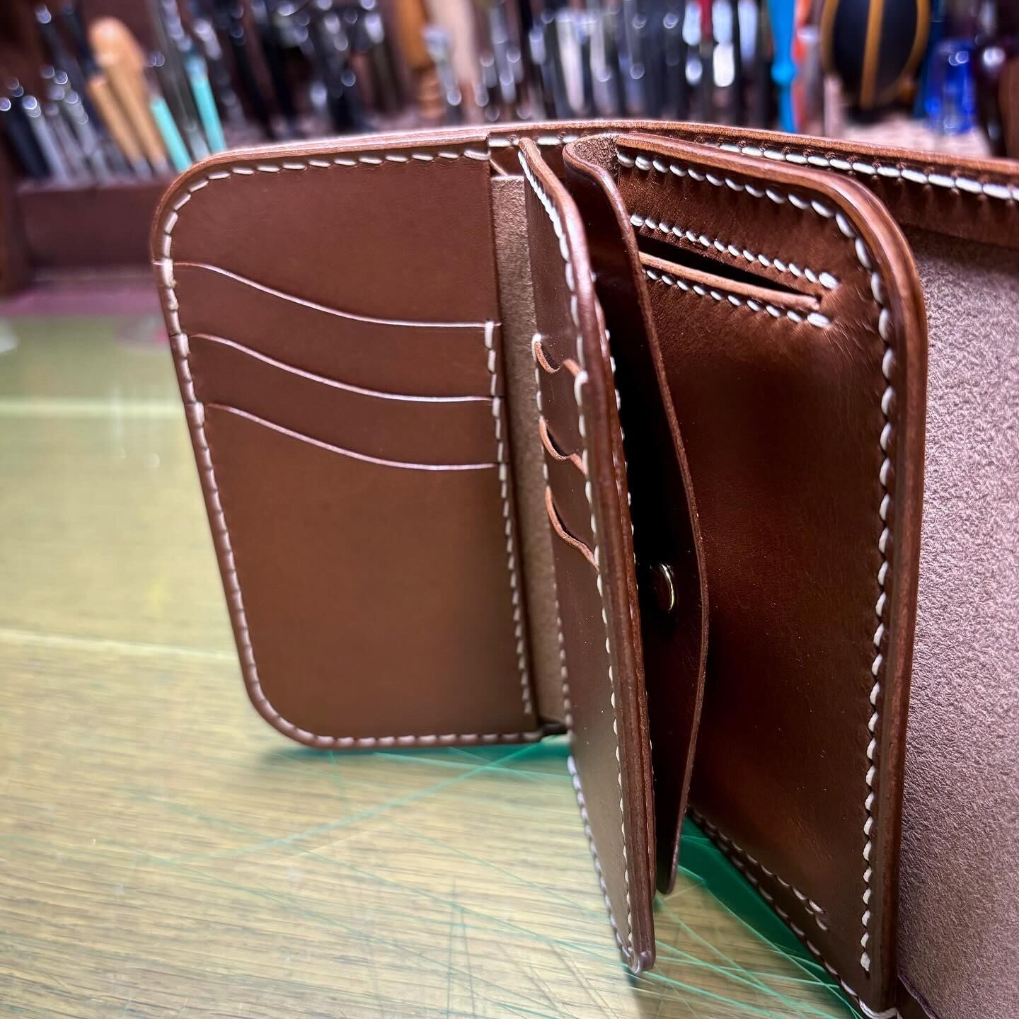 『ミドル』という形の財布は、革財布ならではのアイテムであり、手作りの革小物を代表する物のひとつかと思います。