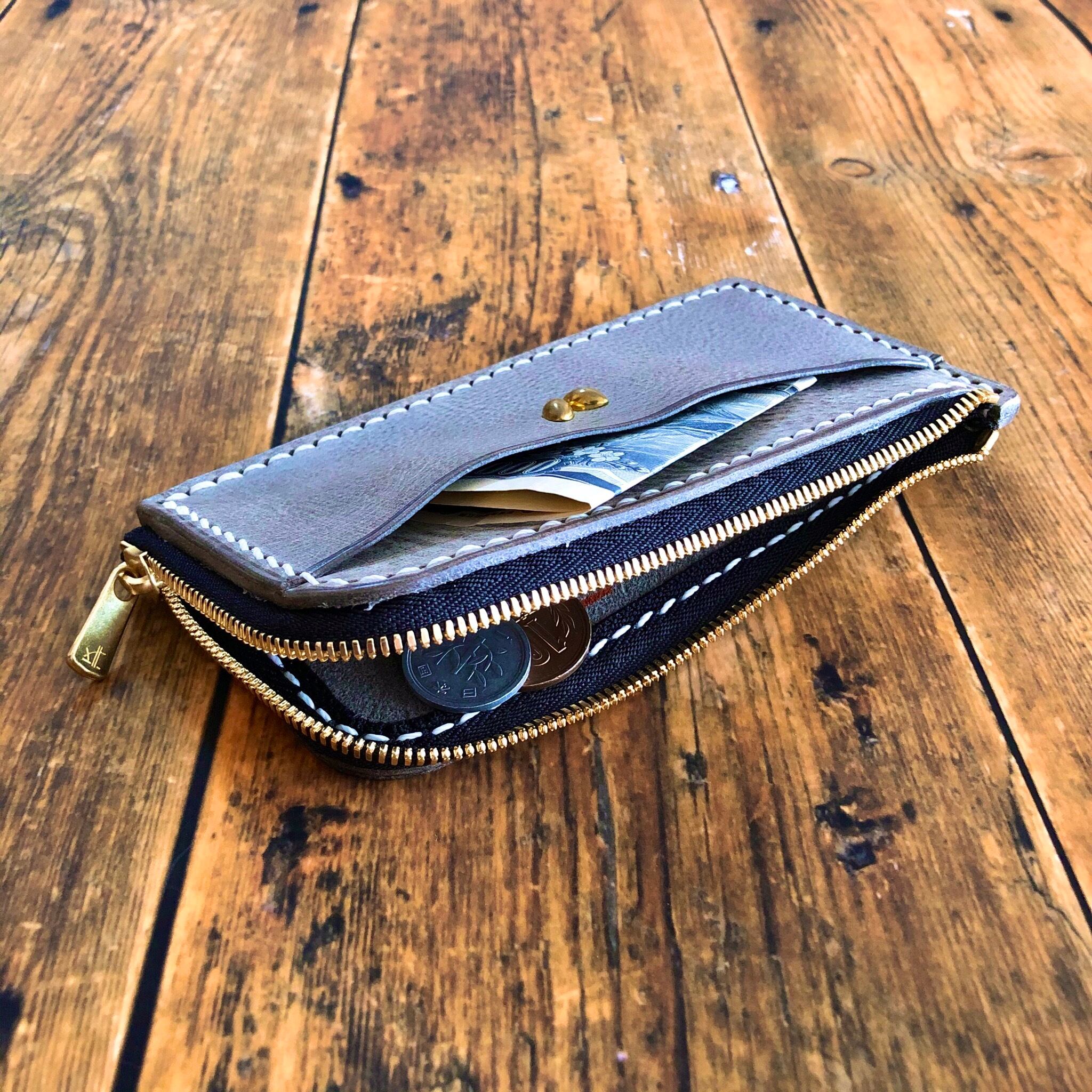 スプラウトスタッズをワンポイントに添えた、L字ファスナーウォレット。