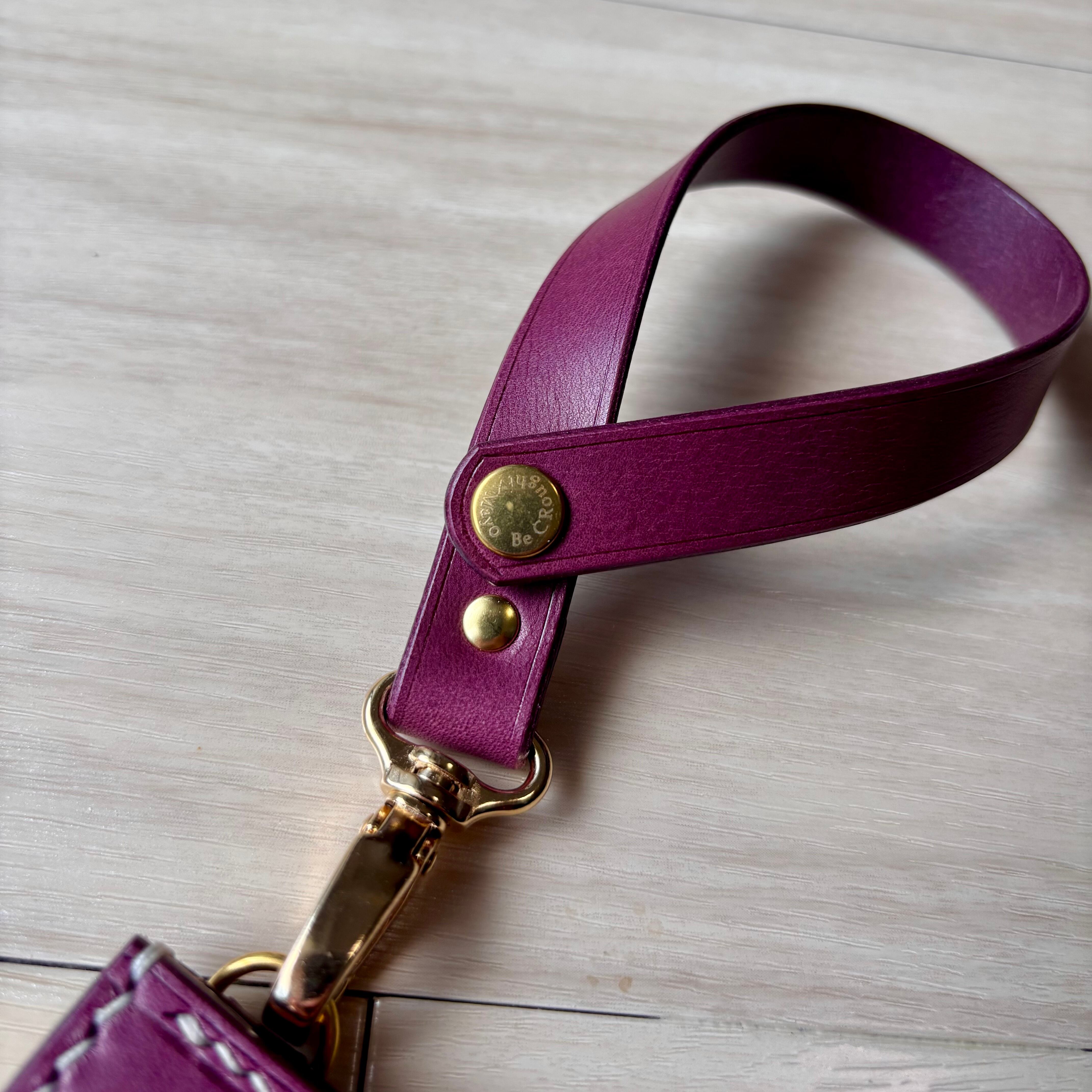 また、ストラップもバッグへの掛けやすさを意識した別デザインとなり、ダブルネーム入りのスナップボタンひとつで簡単に外せるので、ご気分やスタイリングに合わせてカバンへの付け替えもスムーズに行っていただけます。