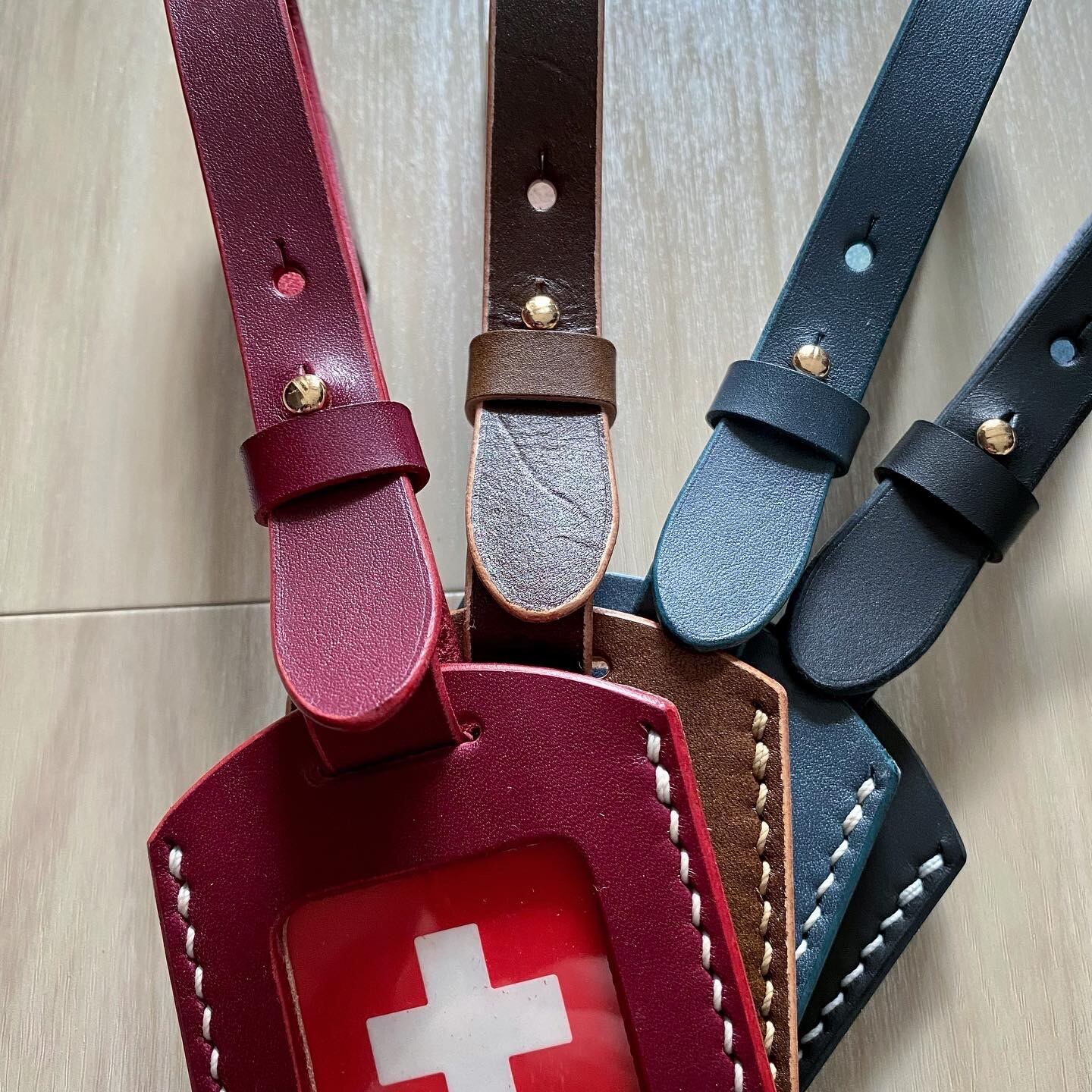 地方によっても若干の差がありますが、ヘルプマークはある程度の厚みがあるので、厚革の「枠」を挟んで外革を縫い合わせることで、マークがすっぽりと収まるようスペースを設けてお作りしてあります。