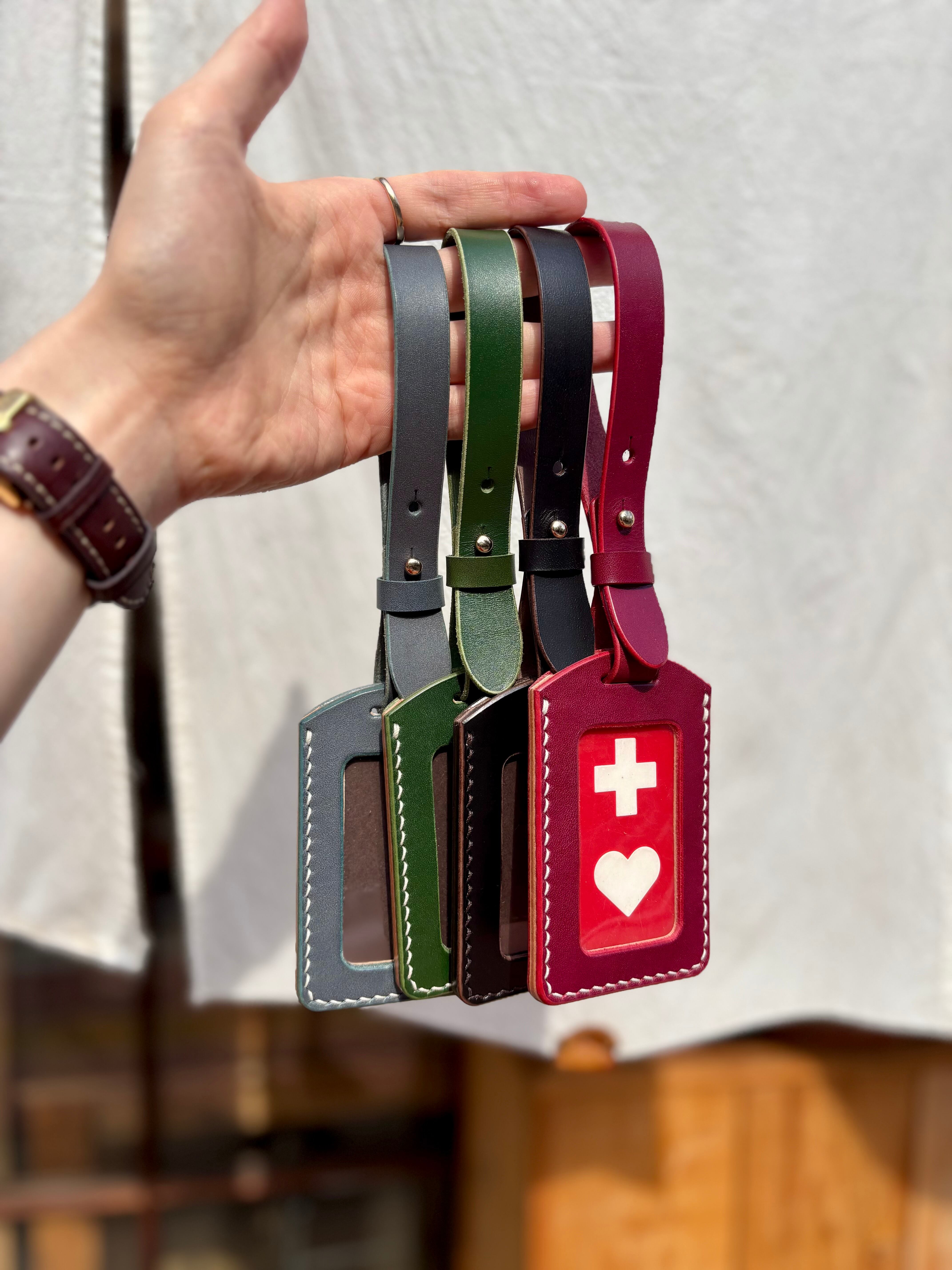 地方によっても若干の差がありますが、ヘルプマークはある程度の厚みがあるので、厚革の「枠」を挟んで外革を縫い合わせることで、マークがすっぽりと収まるようスペースを設けてお作りしてあります。